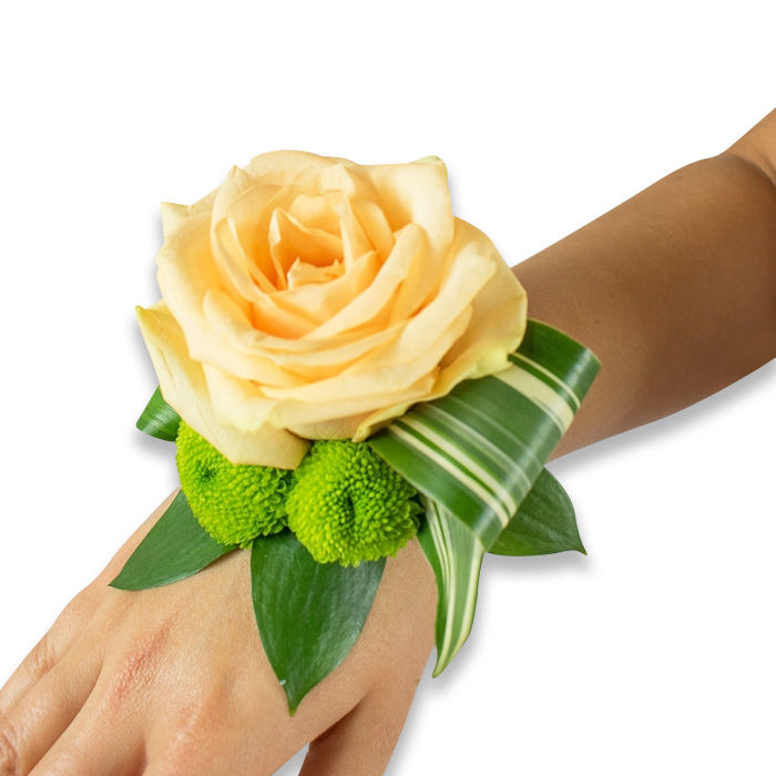 Celebrate your wedding with our elegant corsages featuring pale orange roses and green chrysanthemums. Each flower is hand-selected to ensure supreme freshness and beauty, making them the perfect accessory for brides, bridesmaids, and honored guests.
